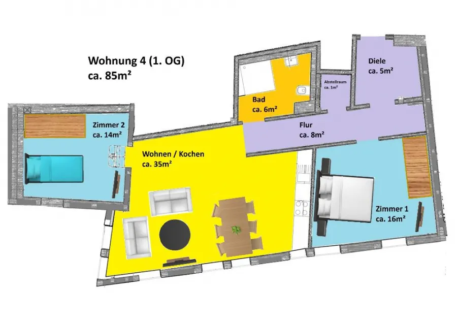 Neue Einheitsbauten sind für Sie langweilig und Sie lieben den Charme mehrerer Jahrhunderte kombiniert mit Annehmlichkeiten von heute? Willkommen im ehemaligen Gasthaus „Zur Tanne“ - werden auch Sie Erstmieter in unserem vollsanierten Fachwerkbau mitten in der Altstadt von Osterwieck!