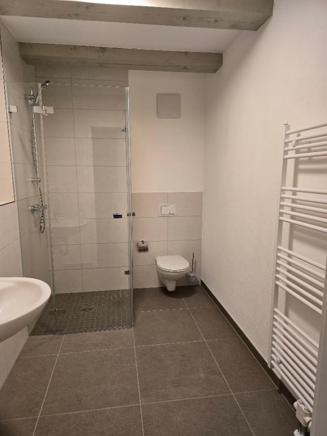 Die vorliegende Wohnung verfügt über ein Innenbad mit Dusche. Das Bad ist mit einer Belüftungsanlage und Lichtpaneelen an der Decke ausgestattet.