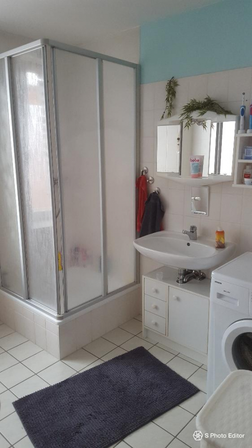 Die Wohnung verfügt über ein modern gefliestes Bad mit Dusche.